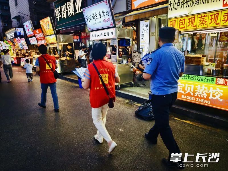 社区工作人员、志愿者和执法人员加强夜市巡查服务。