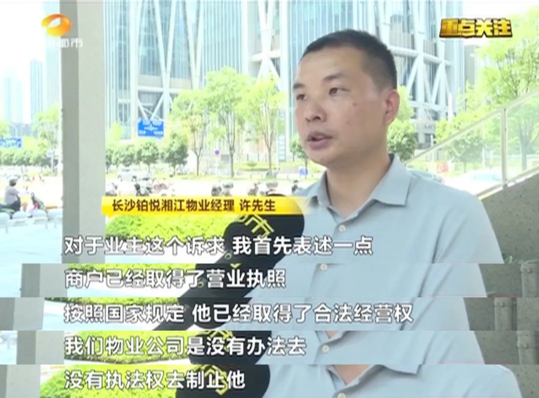 对于业主的诉求,铂悦湘江物业许经理回应称,已开业的商户均持有合法经营资质,物业公司无权进行执法干预或强制关停。