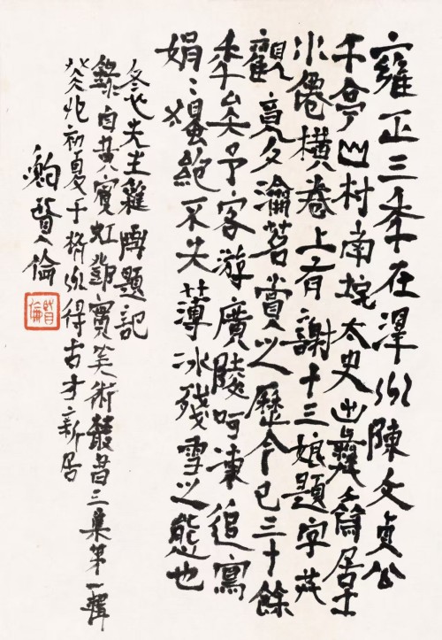 鲍贤伦、陈阳静无疑是当代简牍创作两个重要代表人物。他们在年龄上分属两代,但在简牍创作谱系归属上又跨越代际而共属一代,具有共同的审美观和价值观。鲍、陈两家在秦简与汉简的开掘与个性发挥上,皆表现出卓荦的创造性,这是无或疑焉的。鲍贤伦对秦简的揭橥,使他避开了汉隶的惯常书写模式,而开辟出隶书创作的个人疆域。就对秦简的独诣性探研这一点来说,鲍贤伦无疑占据了当代隶书创作的一个制高点,而使他的隶书创作在当代隶书领域大发异彩,一时独步;陈阳静在当代汉简创作领域后出转精,他几乎在秦简、东西两汉简不同地域与时间形态的简牍创作上自由采撷与转换,而以《急就章》为中心文本,达到汉简创作的高度。相较而言,鲍、陈两家简牍创作,皆以古法为端的,其对秦汉简牍的孜孜砥砺皆显超时辈。两家以古法标举高古,进而以风格化为旨归,此又颉颃时流者。当代书法同弊者,在于将古意与风格对立,以为引古法者必无风格,此又大谬不然者!综观书史,每一代引动潮流而稳居书史者,终须入古。此当代书法所不得不求诸反思者。
