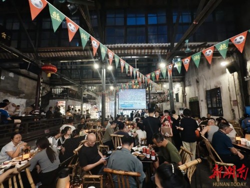9月7日晚,长沙东茅街茶馆里,传统茶文化与现代足球热情意外相遇,上百名球迷围绕大屏幕,共同见湘超揭幕战的激情时刻。