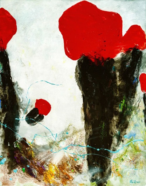 鸥洋《红与黑的记忆2》100×130cm