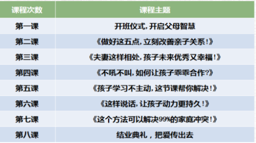 5、掌握提升家庭关系(夫妻关系、婆媳关系、隔代关系等)的技巧,提升家庭幸福感,为孩子的成长建立健康、和谐的家庭氛围6、掌握儿童与青少年常见的疑难问题和解决方法,获得家庭教育“百宝箱”。