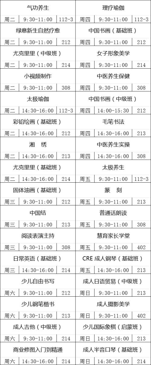 上课地点:长沙图书馆二楼213室(报刊借阅室旁)