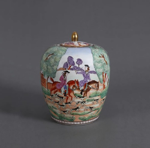 珐琅彩西洋人物狩猎纹罐,18世纪