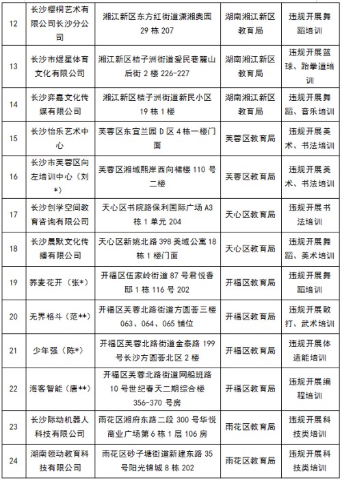 长沙市持续推进校外培训专项治理,依法依规查处各类违规培训行为,全面巩固“双减”成效。记者从长沙市教育局获悉,今年8月至9月,全市共查处违规校外培训91起,其中隐形变异学科培训55起,擅自举办非学科类校外培训(无证非学科培训)28起,违规收费行为8起。