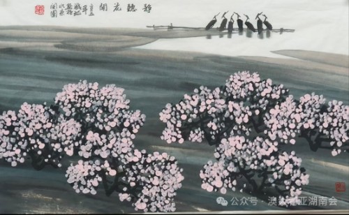 桃花江边桃花开,花开有声美如画。魚鹰们伫立画前,静听花开。