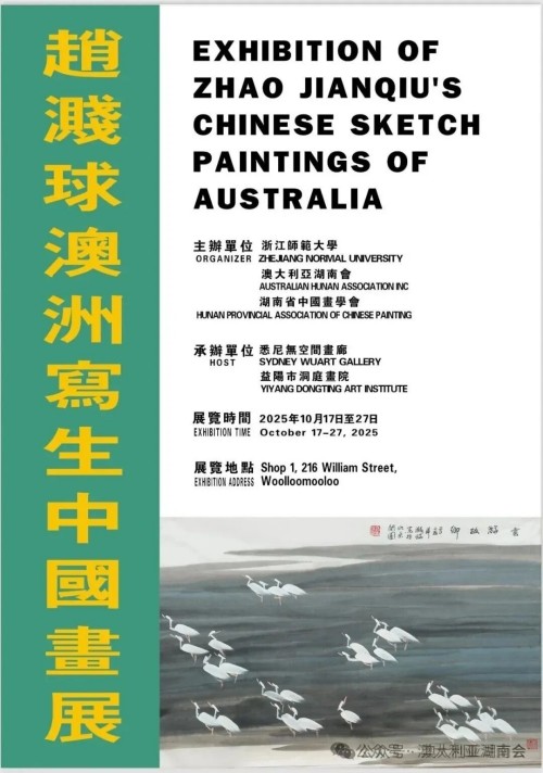 2025年10月17日上午,《 赵溅球澳洲写生中国画展 》在悉尼无空间画廊隆重开幕。此次画展由澳大利亚湖南会、浙江师范大学、湖南省中国画学会联合主办,悉尼无空间画廊与益阳市洞庭书院承办 。开幕式吸引了来自中澳两国政界、艺术界、学术界及华人社团的一百多位嘉宾莅临现场,场面隆重热烈,气氛高雅而充满文化交流氛围。