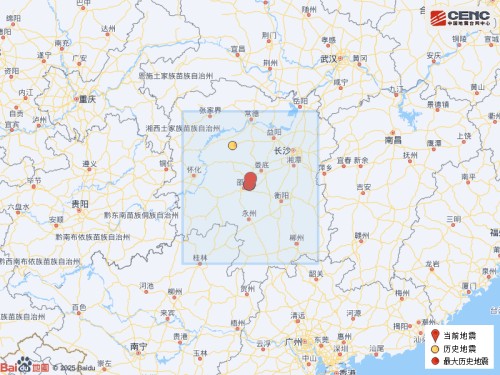 历史地震:根据中国地震台网速报目录,震中周边200公里内近5年来发生3级以上地震共3次,最大地震是2025年10月3日在湖南邵阳市邵东市(塌陷)发生的3.7级地震(距离本次震中3公里),历史地震分布如图。