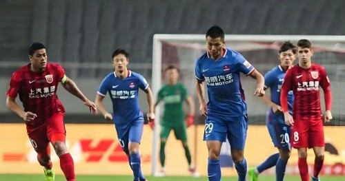 杨柯(蓝衣29号)效力重庆力帆期间,与上海上港对阵。