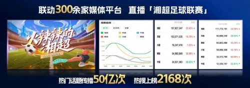 在新闻主阵地,创新表达方式,强化全域传播。持续推进新闻“改文风、改台风、改画风”,增强网感,提升新媒体传播力。拓展商业平台重点账号,湖南卫视微博、芒果TV抖音多次进入中宣部月度前十。打造《南县种虾记》《与非洲同行》等20余个亿级流量爆款作品。联动300余家媒体平台同步直播“湘超”足球联赛,热门话题传播50亿次,热搜上榜2168次,实现了现象级传播。