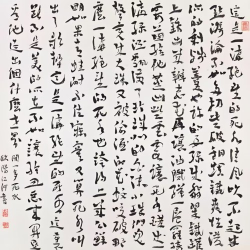 欧阳江河与莫言,同是进入文学史书的人,这一点无可争议。对于莫言的书法,我最多只是,笑看而已;但对于欧阳江河的书法,我毫不掩饰,十分喜爱。