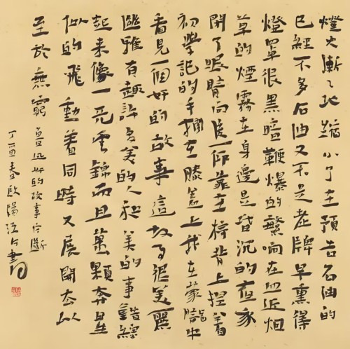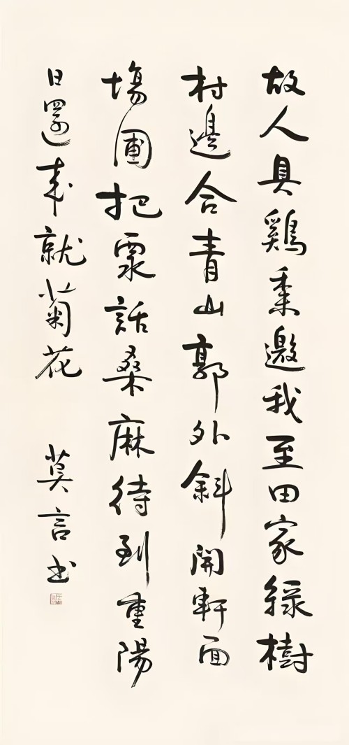 欧阳江河书法,是名家书法;而莫言书法,是名人书法。这就是书法艺术专业与非专业的根本区别。当然,莫言的书法,也是习帖练字过的,算半个练家子。可是左看右看,总觉得少了才气与灵气,更少了天赋。我总感觉,莫言书法,是他经后天,不懈努力勤练,才有了书法的模样。不过,在文坛诗界,要达到莫言书法的模样,也绝非易事,强过大多数文人墨客。再加上,莫言是大作家,又有中国本土首位诺贝尔奖获得者身份垫底,莫言的书法有一定的文化与文献价值。欧阳江河的书法,是天赋异禀与才气四溢,再以他大诗人身份作为加持,作为书法家的他,名符其实,艺值倍增,可谓诗书双绝,珠联璧合,跨界非常成功。