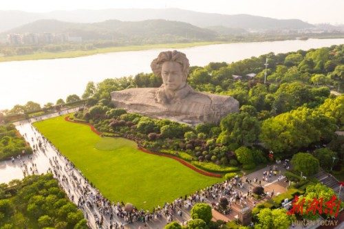 是呵,望着“秋风萧瑟,换了人间”“万类霜天竞自由”的无限秋色,感触着“长岛人歌动地诗”的时代脉搏,谁都会想起100年前,毛泽东在橘子洲写下的豪迈雄伟诗篇。此刻,我真切地听到浩荡的湘江,正扬波高声吟诵毛泽东的《沁园春·长沙》: