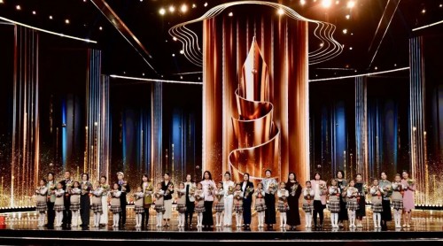 盛典现场,19位获奖作家先后登台,带着对读者的热忱和对文字的热爱,在悠扬的弦乐声中接过奖杯,与观众和小读者分享自己的创作初心和人生历程,共同展现了中国儿童文学繁荣发展、生生不息的动人图景。