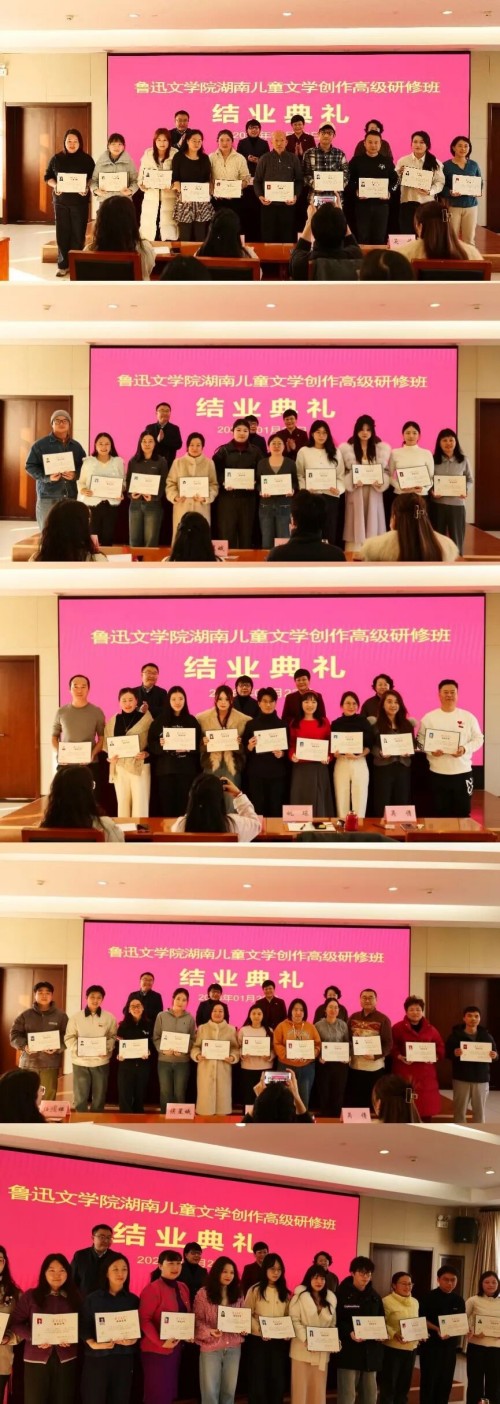 1月22日,鲁迅文学院湖南儿童文学创作高级研修班结业典礼在京举行。鲁迅文学院常务副院长李东华,副院长郭艳、张明远,湖南省作家协会主席汤素兰出席典礼并为学员颁发结业证书。研修班52名学员及工作人员共同参与,见证这段为期十天的文学研修之旅圆满落幕。