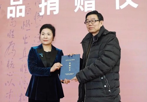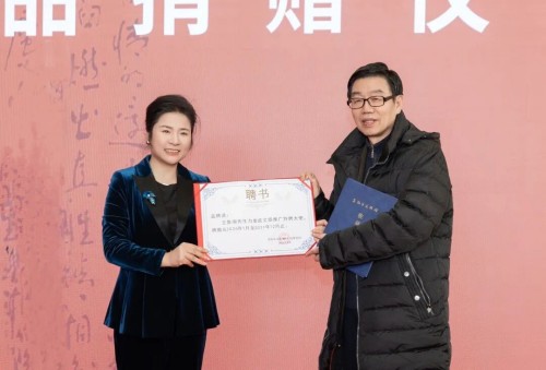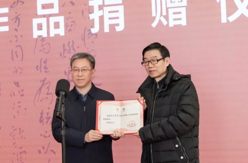 娄底市文旅广体局党组书记、局长彭一伶为王鲁湘先生颁发作品收藏证书、娄底文旅推广特聘大使聘书