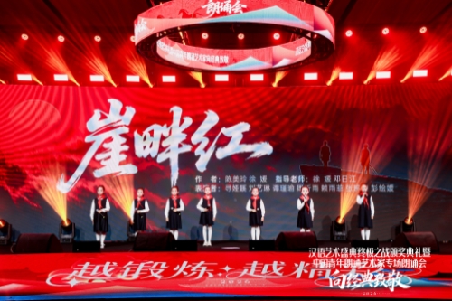 演出在思想深度与艺术维度上实现了双重突破。来自湖南浏阳的青少年集体朗诵的原创作品《崖畔红》深情缅怀了新中国第一位女将军李贞的英勇壮举,让潇湘热土上的红色基因在舞台上焕发新的光辉。创意原创节目《绣虎少年》则以“以针为戟,以线为弦”的巧妙构思,将非遗技艺与家国情怀融为一体,抒发了真挚而坚定的青春报国志向。从巴金拷问良知与责任的《我的心》,到李白挥洒浪漫风骨的《梦游天姥吟留别》,从宗璞蕴含生活哲思的《丁香结》,到杨牧以西北边塞生活为底色的《我骄傲,我有辽阔的地平线》,从引导接纳人生真相的《生命的列车》到彰显信念的纯粹与坚守的《心田上的百合花》,朗诵艺术家杨学明、杨召江、向海燕、刘海涛和青年朗诵艺术家韩怡斌、杨晓芳的精湛演绎,让这些经典篇目中跨越时代的精神力量再度被点亮,深深感染了现场观众。