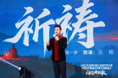 朗诵会精心选取了十四部跨越古今的经典作品,紧密围绕中华优秀传统文化、革命文化与社会主义先进文化三大脉络展开。中国青年朗诵艺术家吕铭的开场作品《祈祷》以深沉的情感,再现了闻一多先生在民族存亡之际对文化根脉的赤诚叩问;紧随其后的《我是一艘船》,中国青年朗诵艺术家樊昕通过红船的意象化叙事,勾勒出中国共产党百年征程的壮美画卷,引领观众在铭记来路中汲取力量,在展望新程中激荡豪情。