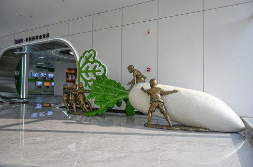 邬辣妈公司场地内的拔萝卜雕塑 周盛平 摄