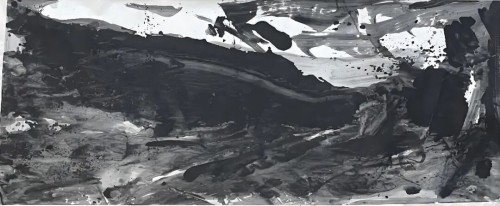 巨幅画面上的浓重墨块、肆意飞白,构建出如同建筑或地貌般的强烈视觉景观。他的抽象是身体行动与物质痕迹的直接记录,充满了原始的生命冲动与当代的现场感。