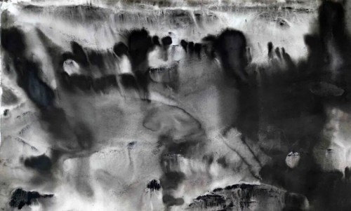 墨色层层积染、氤氲化生,在可控与偶然的边界游走。观其画,如步入一片浑茫的“精神地理”,那里有时间沉积的静默,也有气息流转的韵律,在抽象的形色中保持着与文脉的悠远对话。
