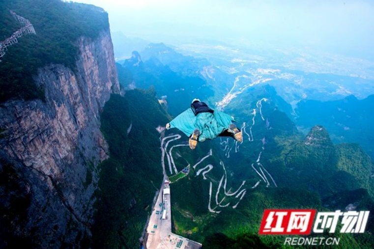 ▲张家界天门山已成为翼装飞行世锦赛的固定举办地。