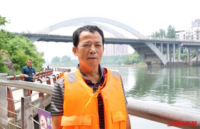 5月23日,记者联系上视频中的救人大叔,他叫丁绍银,今年59岁,是怀化鹤城区水上环卫所的一名环卫工人。